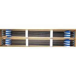 Стрелы укомплектованы стальным 100гр наконечником, перьями длиной 2" типа Blazer, хвостовик с двойным замком