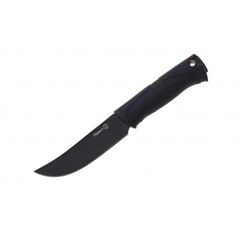 Гюрза-2 - один из первых ножей нашего производства. Нож не потерял за многие годы свою популярность благодаря своему уникальному внешнему виду и функциональным свойствам. Изогнутый клинок. Рукоять из эластрона. Поясные ножны из натуральной кожи. В наличии имеются как чёрные так и полированные клинки, указывать данный момент в коментариях к заказу.
